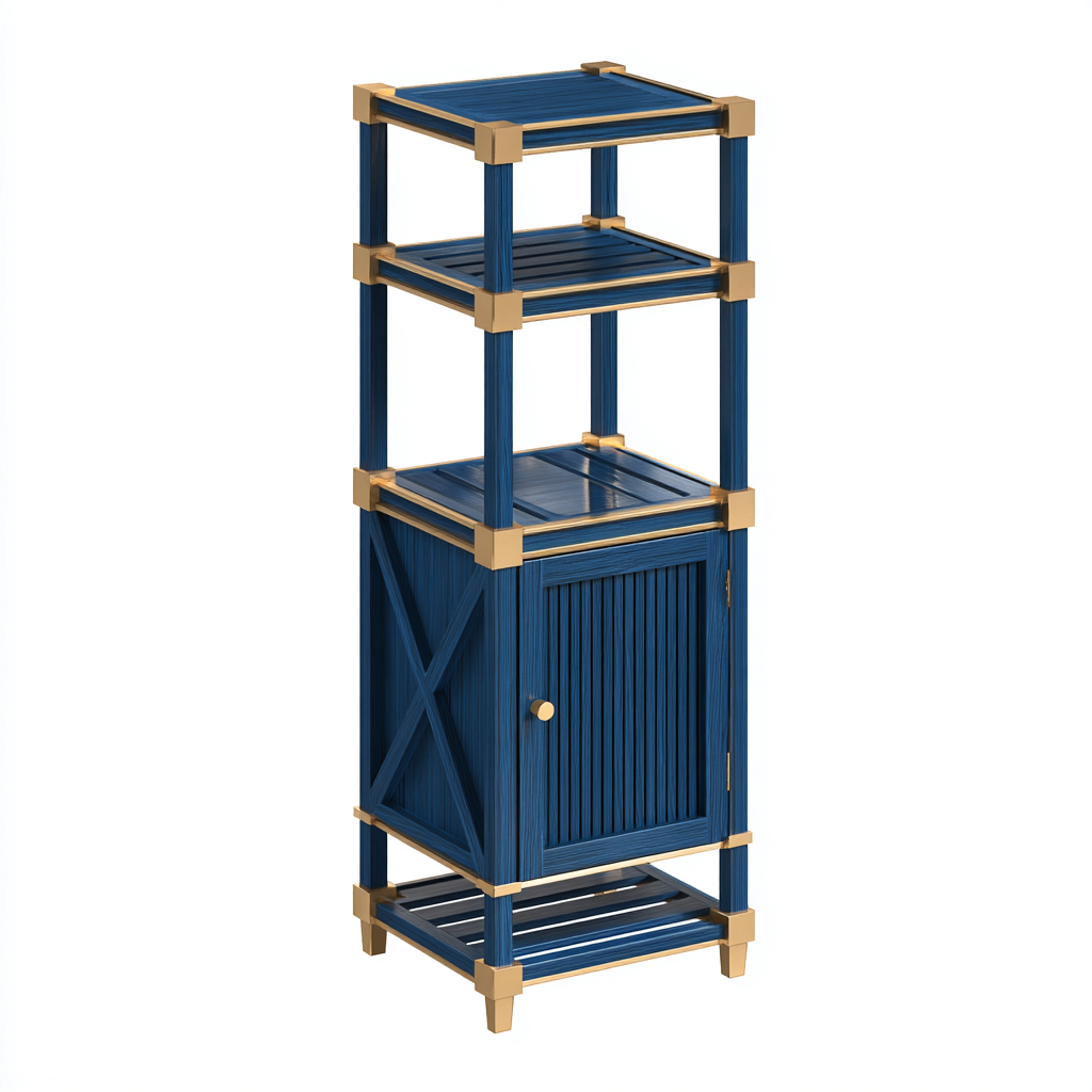 Mobile bagno in legno 40x35x120 cm - blu-oro - design moderno con spazio contenitivo