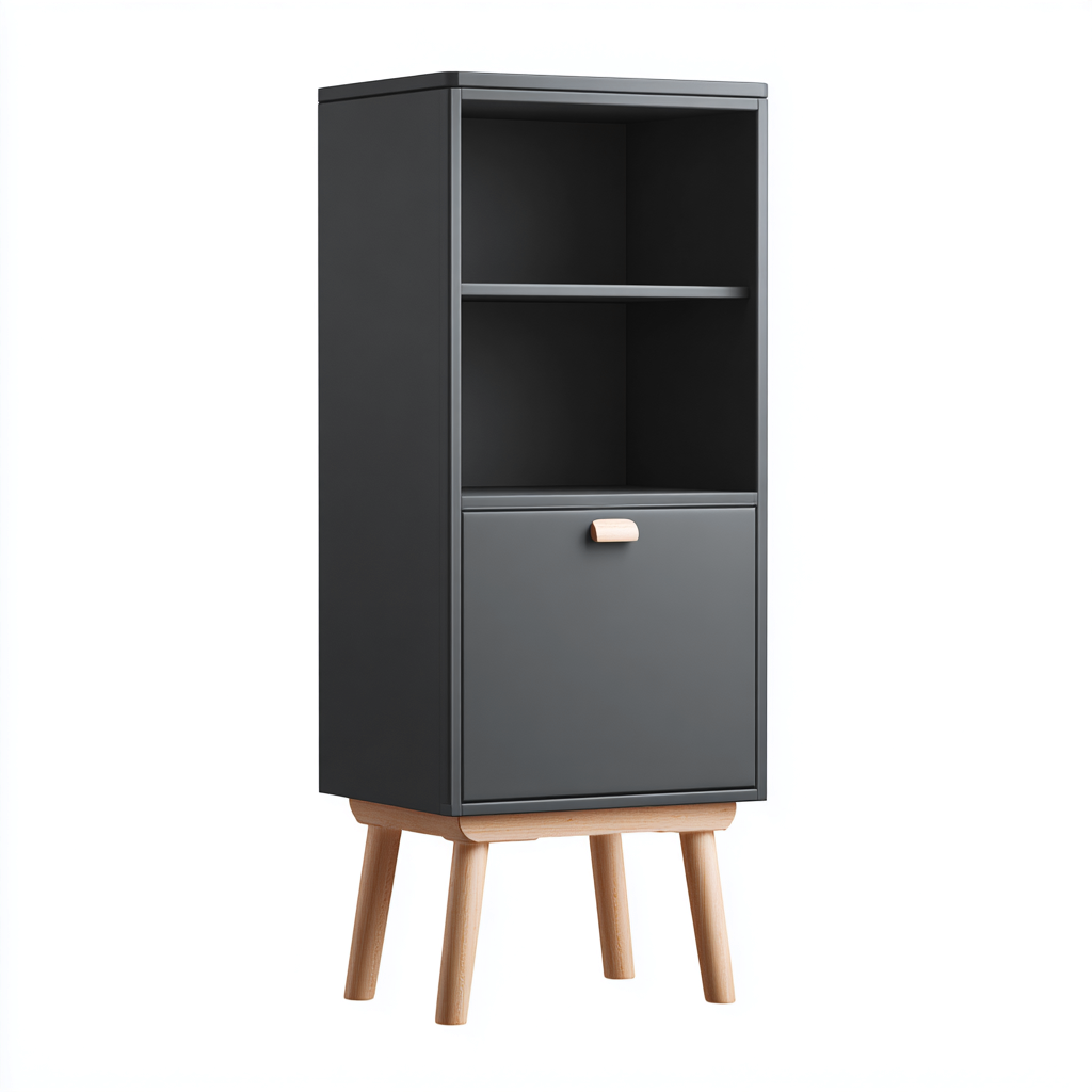 Mobile bagno a colonna moderno in legno 45x35x160 cm - grigio scuro-legno - stile nordico compatto