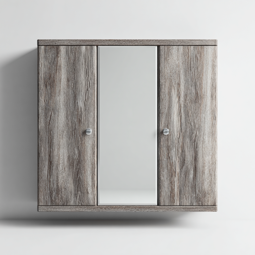 Mobile bagno pensile con ante e specchio 90x15x60 cm - marrone - design moderno