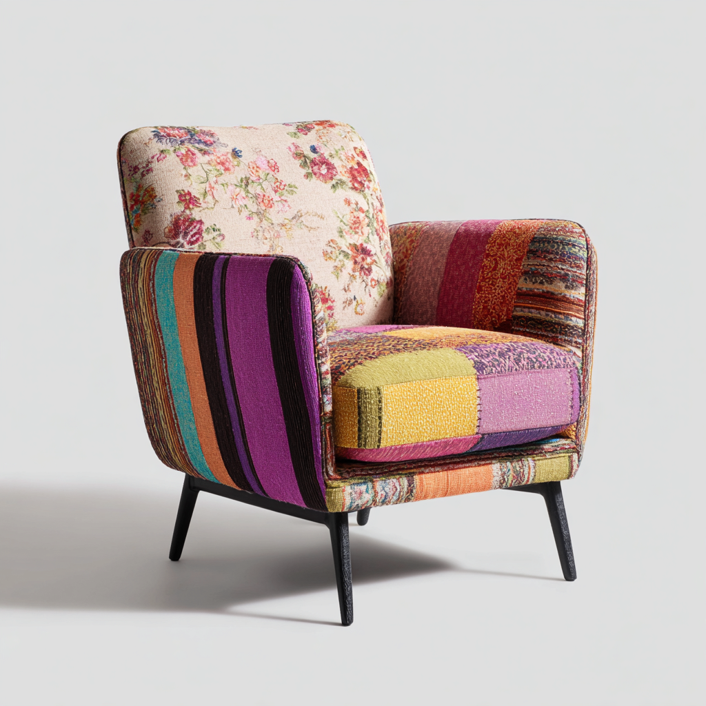 Poltrona tessuto patchwork legno 75x78x82 cm multicolore design