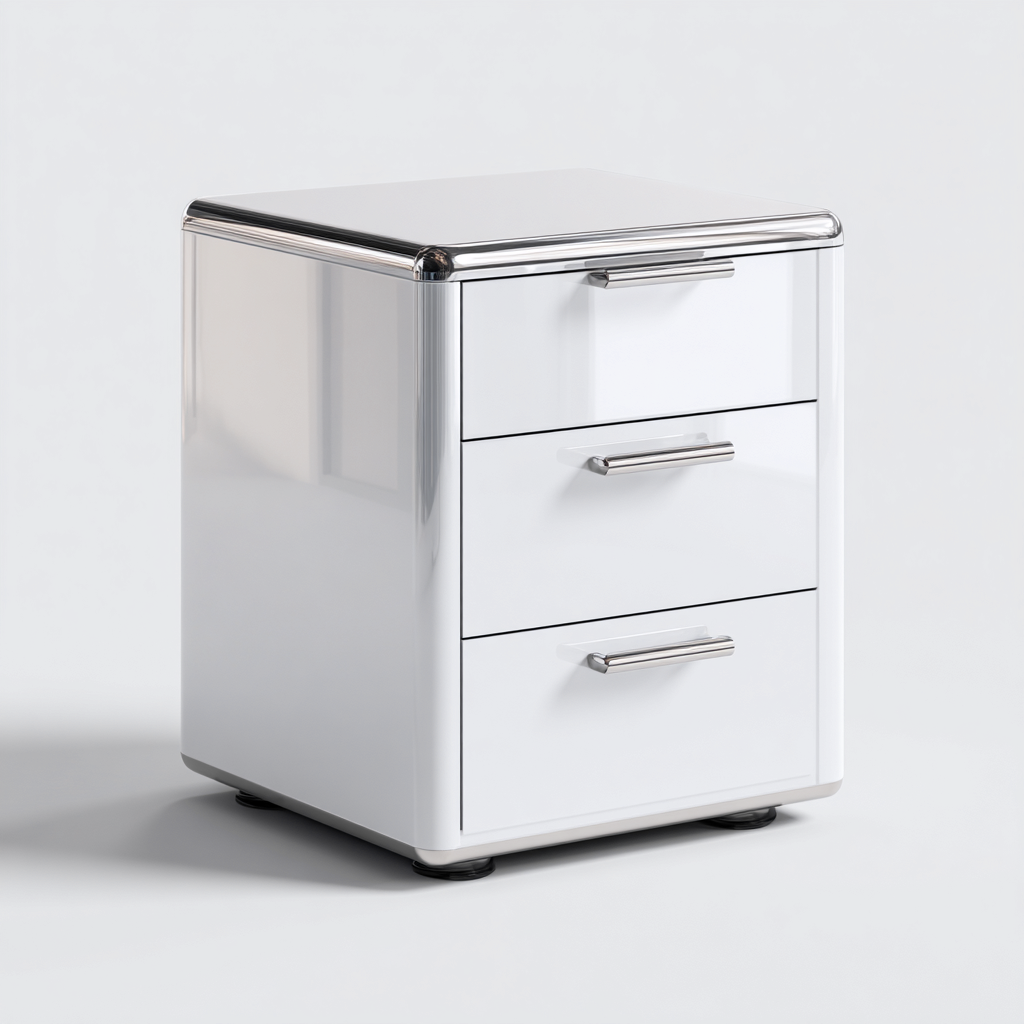 Comodino dal design moderno e pulito, ideale per camere da letto contemporanee e ambienti minimalisti. Le forme compatte e le superfici lisce si integrano facilmente con diversi stili di arredo.