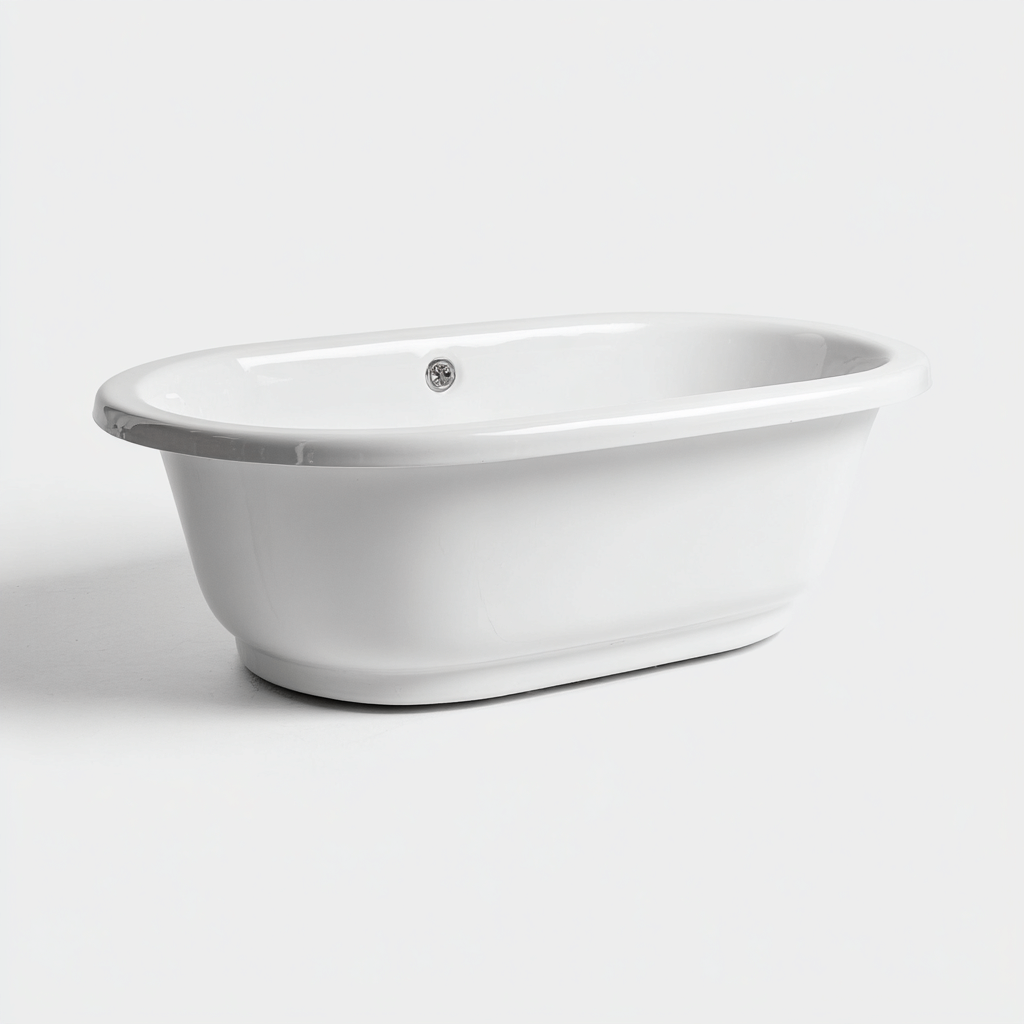Vasca da bagno freestanding dal design classico e armonioso, ideale per ambienti bagno eleganti e confortevoli. La forma ovale con bordo arrotondato offre una superficie ampia e accogliente per il relax quotidiano.